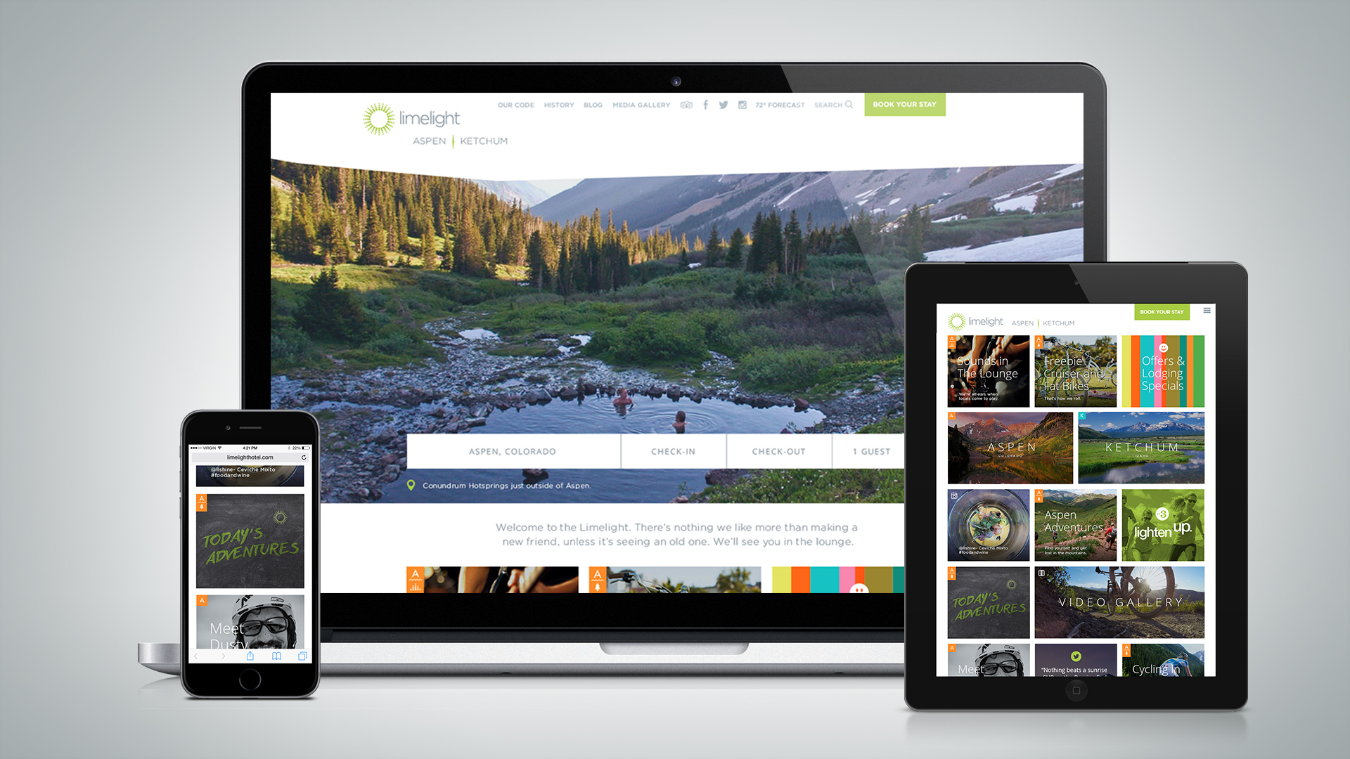 The Limelight Hotel is the essence of the original Aspen – a community of fellow travelers looking for renewal of mind, body and spirit, camaraderie and adventure. It is also a timely response to an emerging customer need. In a market gravitating towards Millennial values – social interaction, unique experiences, and storytelling, it is a hospitality brand on the cutting edge. We were asked to make this Aspen success story “portable” through a new website, introducing the Limelight idea to Sun Valley and other like-minded places. We developed a web strategy based on qualitative and in-person research that translated the physical experience into the digital experience, by creating a community online that continually offers useful content in a fresh, Limelight way.