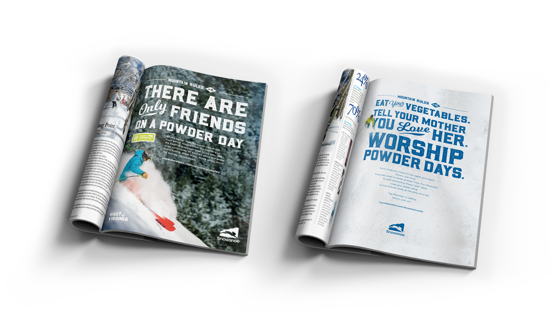 Snowshoe in West Virginia’s Allegheny Mountains is the #1 ski destination in the Mid-Atlantic. The winter business relied heavily on snow, snowmaking and terrain messaging, while the summer depended mostly on events and tactical offers. Our assignment: create a new long-term brand strategy that truly tapped into the culture of the mountain and cemented Snowshoe’s leadership position in the mid-Atlantic, no matter the time of year. Through research, we identified a new positioning that served as the guiding principle driving all initiatives, including operations, marketing, and employee communications. Mountain Rules, the resulting year-round brand campaign, engages its varying audiences between summer and winter, with a focus on storytelling and fresh social tactics.