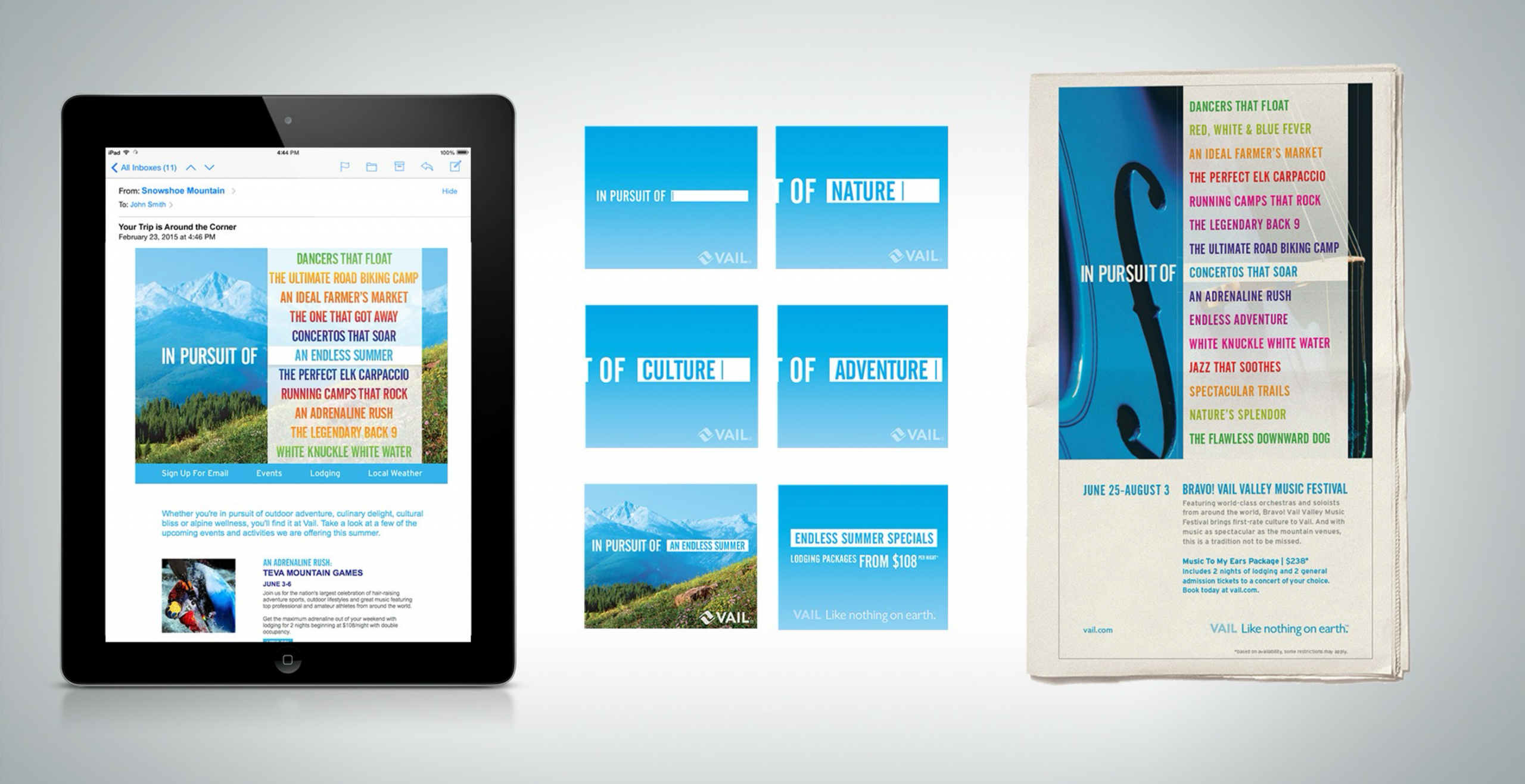 Vail is a mighty presence in winter, but struggled to center its summer business. We were asked to integrate, for the first time, the Vail summer marketing into the winter brand. So now, in place of powder-rich Back Bowls, we needed to tell the “Like nothing on earth” story in a whole new way. We centered it instead on the eclectic Vail community, a band of extraordinary individuals including world-famous climbers, kayakers, cyclists, musicians, and chefs. People of the world who have chosen to pursue their passions in Vail. Our campaign, “The pursuit of personal passions” featured short, intimate films about these famous residents housed on an interactive website where the navigation allowed visitors to explore their own passions. Across TV, magazine advertising, web, display, and social, the campaign contributed to a 22% increase in lodging tax, 8% increase in lodging, and 7% in website visits. For the first time in its history, Vail mountain was communicated as a single, year-round, brand experience.